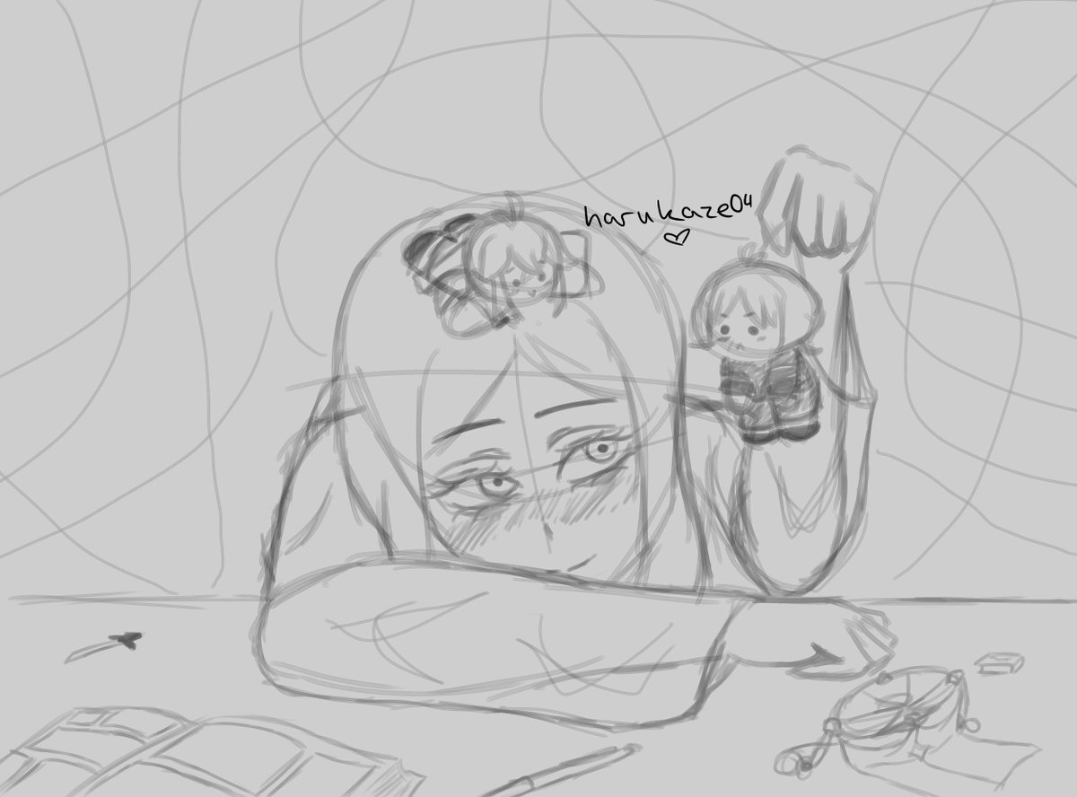 wip! i just had to draw myself with lil #kzsc! and scara is lil angy heh. hoping to finish this the next days!! #KaedeharaKazuha #scaramouche #kazuscara #scarakazu #絵 #イラスト #illustration