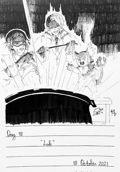 Day 18 of #TwstOBer "Lab" And they proceeded to clean the alchemy lab for the rest of the day. Prompts: raven-at-the-writing-desk.tumblr.com/post/663359454… #ツイステファンアート #twstファンアート #lab #inktober #divuscrewel #illustration