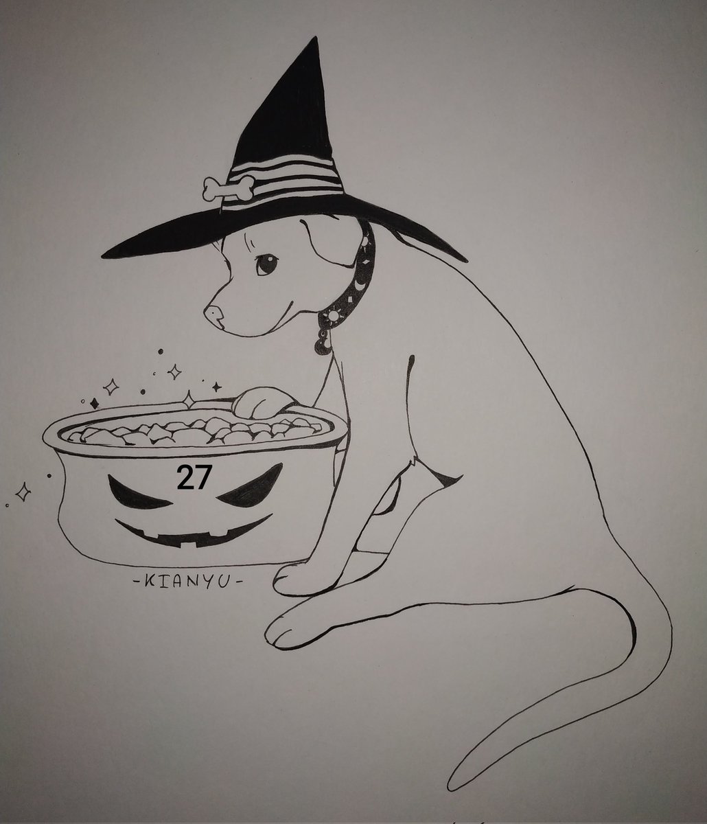 27 - SORCERESS It was time for my dog to become a sorceress and of course she would create some sort of endless food bowl #Inktober #inktober2021 #inktober27 #KianyuArt #inktober2021day27 #artwork #artist #dog #lab #labrador #Halloween #halloween2021