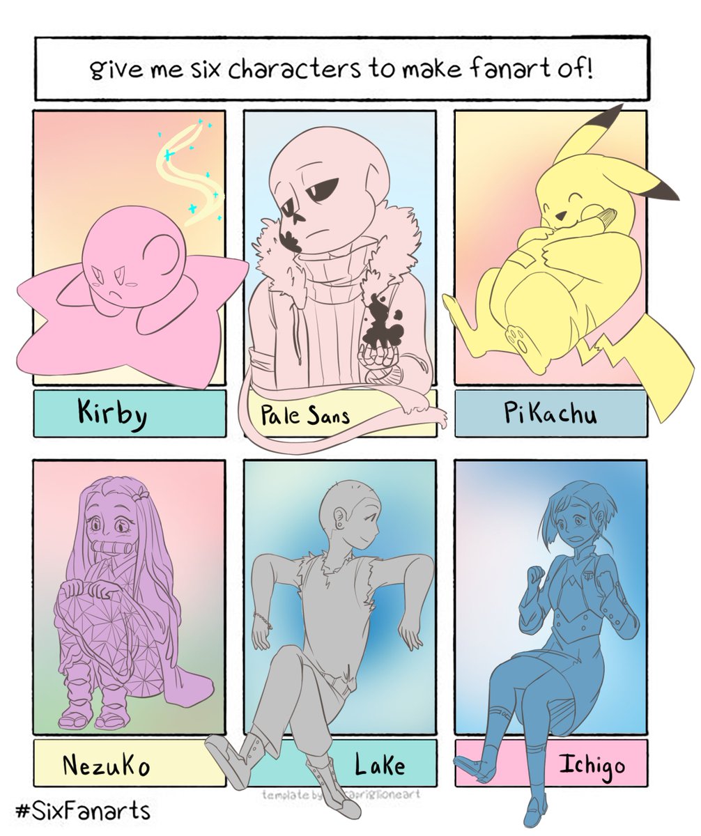 THE #6FANARTS ARE FINALLY DONE YAAAAAAAAAAAAAAAAYYY I'm sorry it took so long but here they are! #kirby #pikachu #palesans #nezuko #lake #lakeinfinitytrain #ichigo #ichigodarlinginthefranxx #sixfanarts