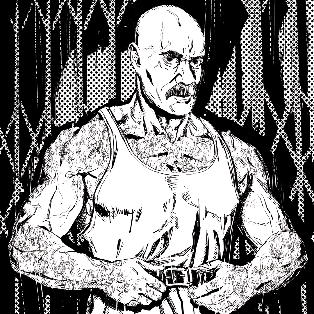 Ilustración para "La reputación del señor Castiñeira". Una aventura para #LaLlamadaDeCthulhu 7ª edición ambientada en la España de los años 80. Escrita por @SrPerro_ y editada por @Shadowlandsed #80s #scene #illustration #Inktober #digitalart #rol #character #portrait #gym