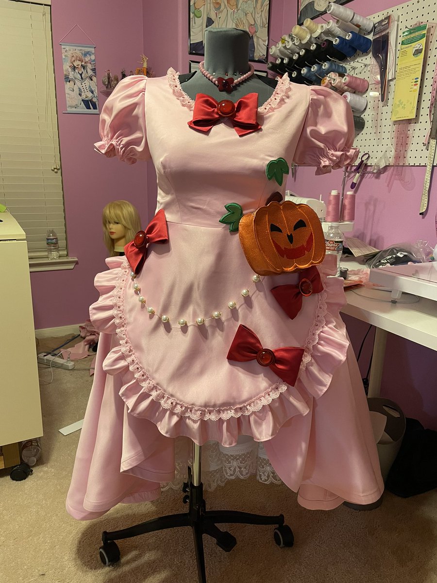 There she beeeee. Needs to be ironed but super close! Just gotta make a few more adjustments, make the hat, style the wig, and wait for some gems for the back bows to come in. 🥰 #lambdadelta #umineko #cosplay