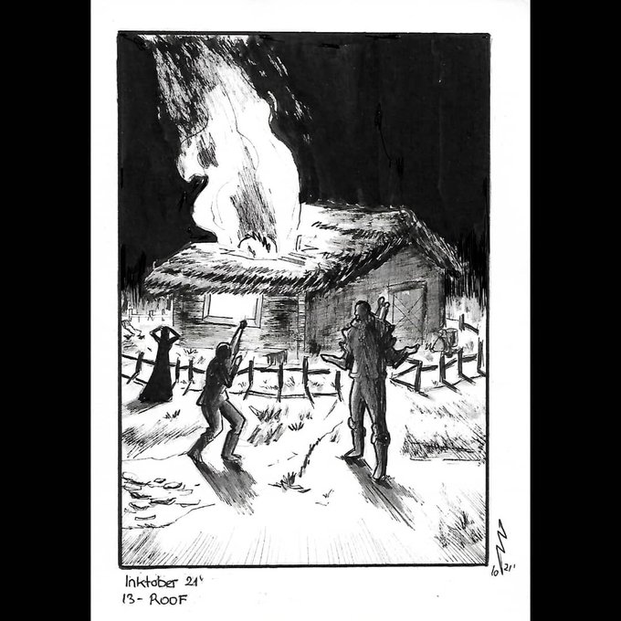 ⚔ Inktober 21' - 13 Roof "What? I killed the beast, right?" Lambert Lambert, what a prick 😆 Only he can make a bigger mess than the beast on the contract. He will kill it no doubt on that, it's just the way he'll do it... #inktober2021 #inktober #roof #thewitcher #lambert