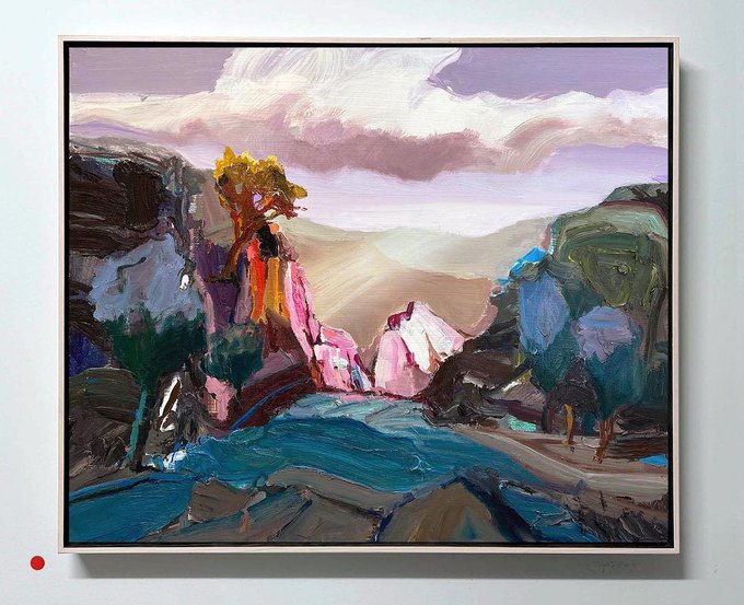 The largest painting in my exhibition… “Dawn Breaks in the Canyon”, 122X140cm. Sold and heading to one of my lovely collectors in the US this week 🙏🏻 🔴 #landscapepainting #landscapepaintings #artlandscape #landscapepainters #paintinglandscape #landscapeart #landscapeartist