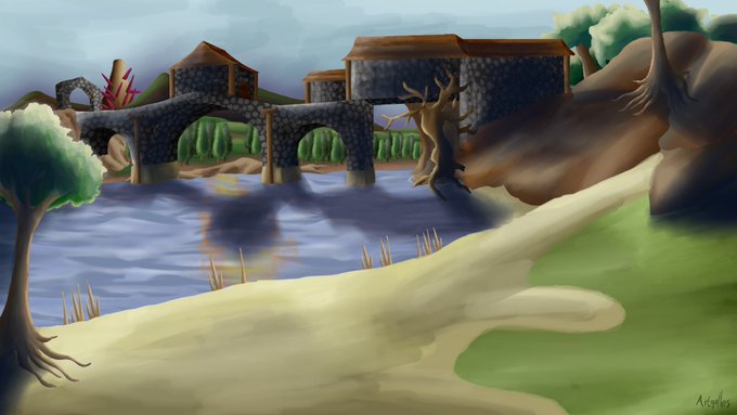 A bridge just waiting for a story - #worldbuilding #fantasy #dnd #dndart #ttrpg #worldanvil #landscapedrawing #digitalart #illustration