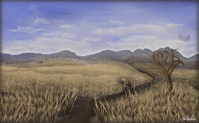 The dry country side is home to the Reaver, the cannibalistic hyena men. They attack unsuspecting travellers with a mindless hunger that drives their blood lust. - #worldbuilding #fantasy #dnd #dndart #ttrpg #worldanvil #landscapedrawing #digitalart #illustration