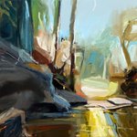 Enjoying my mountain walks. Scrambling down a bush track, the trees cleared to reveal a sparkling pool of water and a waterfall… “Mountain Pool”, 85X85cm, oil on polycotton. #landscapepaintings #richardclaremont #landscapeartists #landscapepainters #paintinglandscape