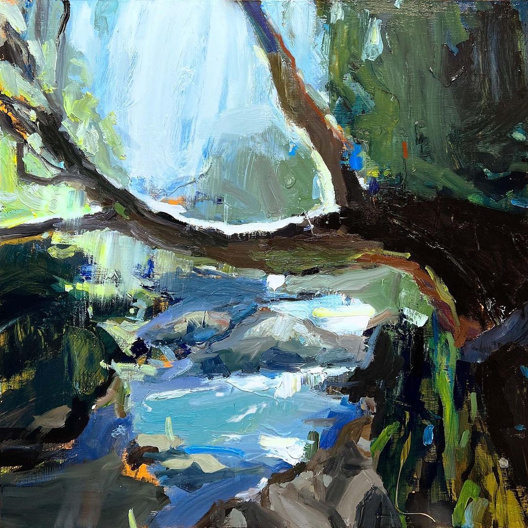The unexpected joy of stumbling on a mountain stream… goodness knows the last time someone was here. “Wild Places”, 61X61cm, oil on board. #landscapepainting #landscapepaintings #richardclaremont #landscapeartists #artlandscape #landscapepainters