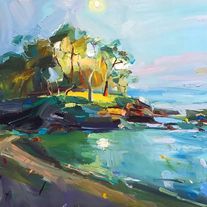 From the micro to the macro, there is a lot that’s worth painting in this world. Memories of an evening moment at Pittwater… “The Day”, 122X122cm, oil on linen. #landscapepainting #landscapepaintings #richardclaremont #landscapeartists