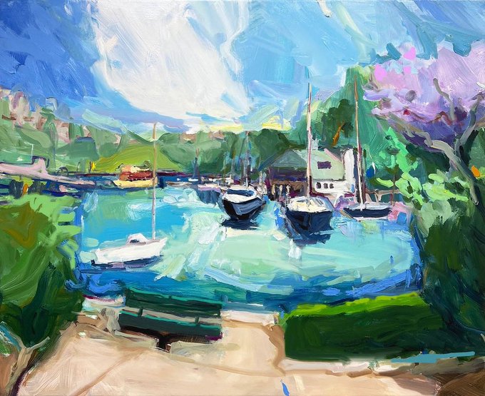 Feels good to be painting Sydney again… “Rowers Club, Mosman Bay”, 85X85cm, oil on polycotton. #landscapepainting #mosmanbay #cremornepoint #mosmanlife #harbourpainting #sydneyharbour #rowersclub #landscapepaintings #richardclaremont #landscapeartists #artlandscape