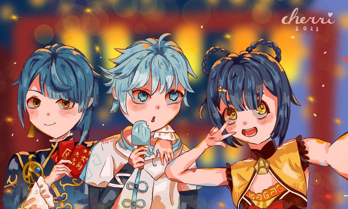 late lantern rite selfie with xingqiu, chongyun, and xiangling! 🧧 #GenshinImpact #ArtistOnTwitter #animeart #lanternrite #genshin #原神 #rkgk