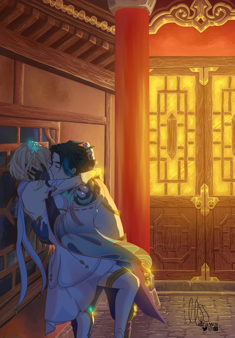 [Lantern Rite gathering part 3/6] just a bard and his admirer 🎶 #GenshinImpact #Genshinfanart #xiao #zhongli #venti #xiaoven #aether #Xiaovenweek2023 #lanternrite #LanternRite2023