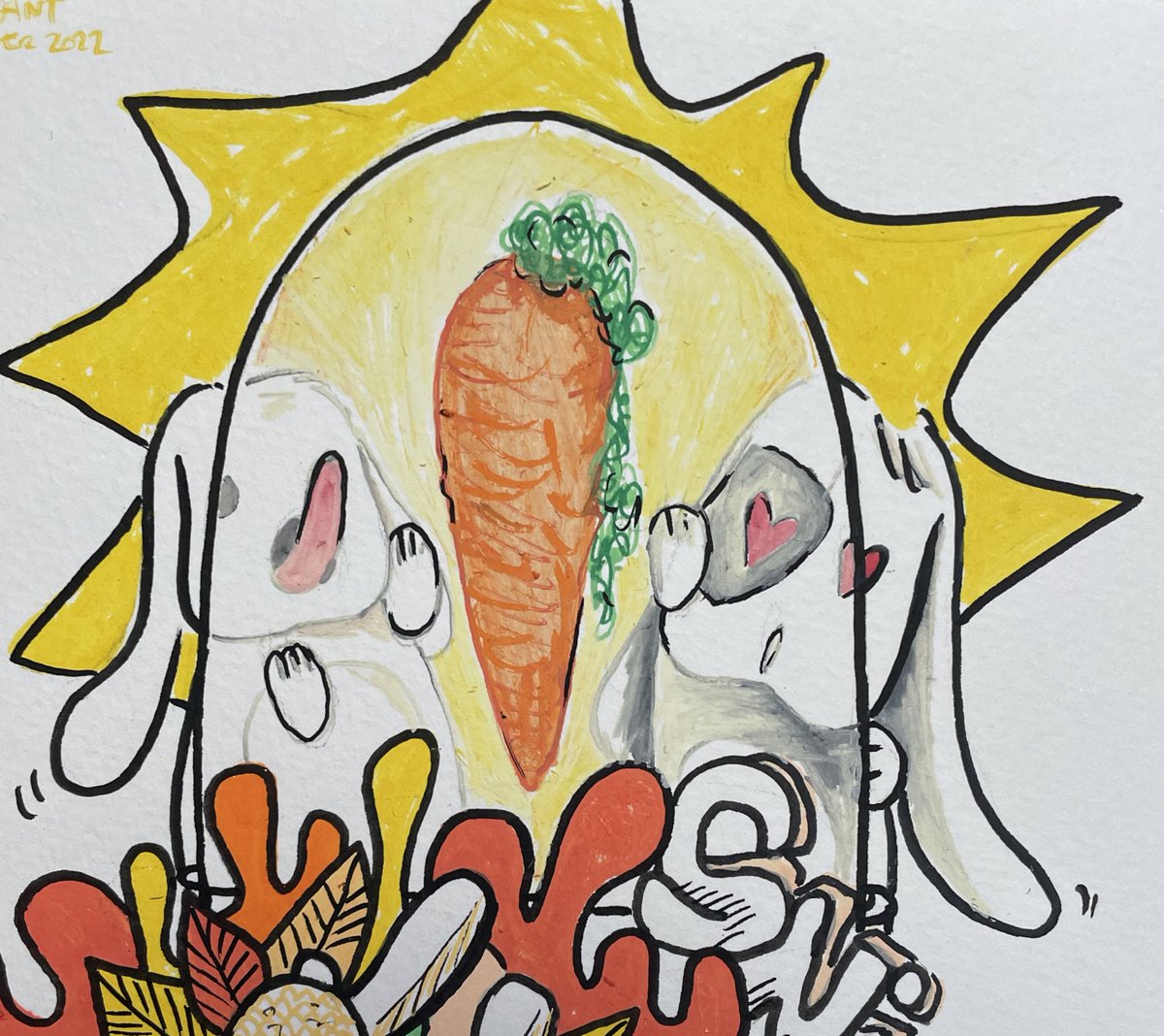 Inktober 2022 - jour 6 Bouquet Face A et B #lasupermini #fleurs #inktober #inktober2022 #bouquet #dessin #posca @inktober #lapin