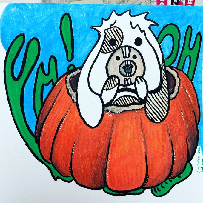 Inktober 2022 dernier jour !!! La ferme… aux citrouilles 🎃 Happy Halloween #inktober #inktober2022 #halloween #citrouilles #jackolantern #lapin #rabbit @inktober