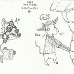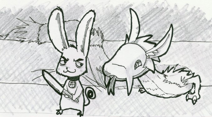 #inktober 2021 D30 D31. I already had this drawing on Saturday, but I'm lazy. Someone who has a tendency to "slide" tries to surprise a creature that lives for the "risk". #inktober2021 #draw #drawing #traditionalart #pencildrawing #pencil #cute #artchallenge #dibujo #lapiz