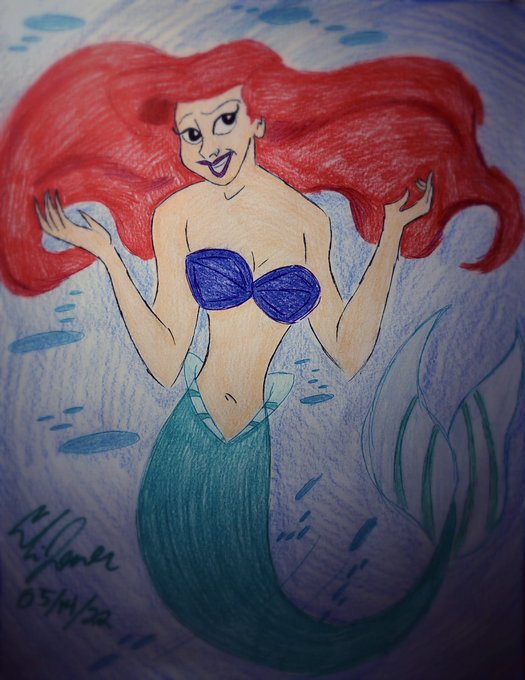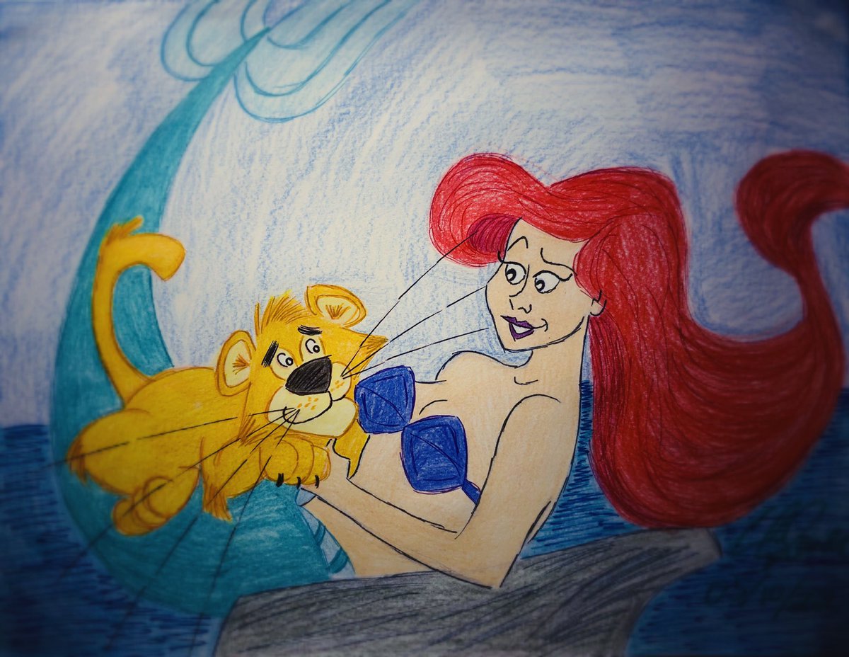 🦁 Ariel and a lion cub 🧜🏻♀️ #Disneyfanart #latenightdrawing #Ariel #TheLittleMermaid #lioncub #mermaid #mermay2022 #mermay