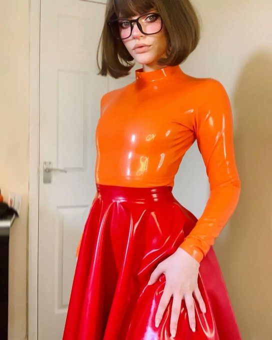 A lovely Velma cosplay 🧡❤️ Model: @sadtigergirl #cosplay #latexcosplay #latexfashion #latexskirt #rubberskirt #rubberdress #latexdress #cosplayer