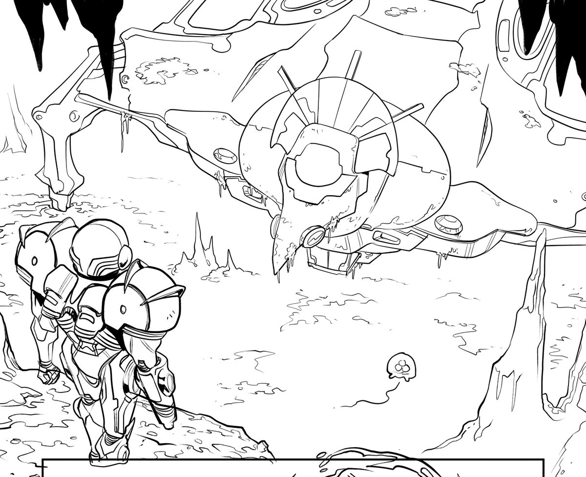 Another Inktober panel from #MetroidSHRED - art by marvelous @maumoraart! #Inktober2022 #SciFi #Metroid #SamusAran #FanFiction #LatinxsCreate #ComicArt 👾