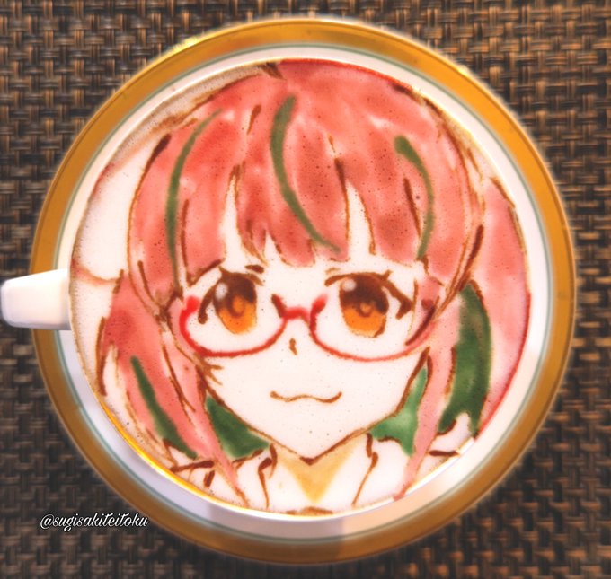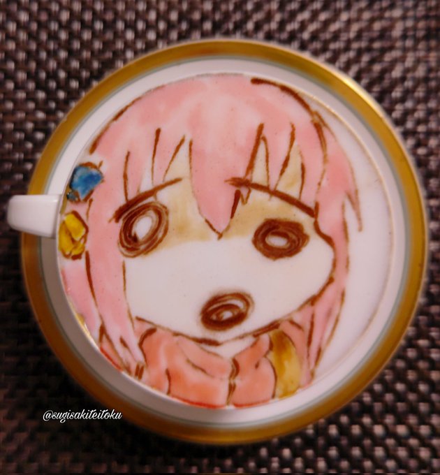 本日のラテアートは『ぼっちざろっく』からスピンオフ作品主人公に抜擢された「廣井きくり」で一杯 遂に廣井さん主人公の漫画が配信開始されたので記念に一杯 安定の酒クズでしたねw #ぼっち・ざ・ろっく #廣井きくりの深酒日記 #ラテアート #latteart