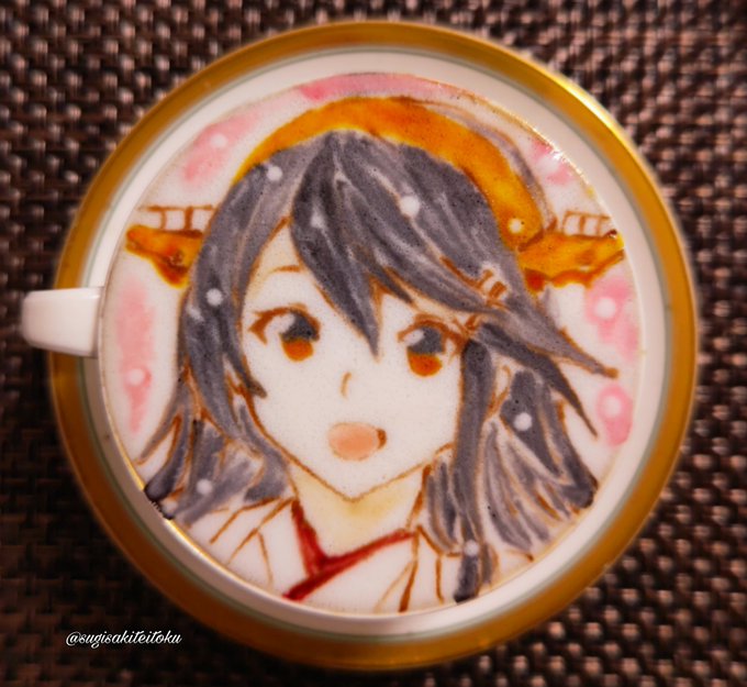 本日のラテアートは榛名で一杯 いつかあの海でで出演してくれてホントに良かったです #艦これ版深夜の真剣お絵描き60分一本勝負 #艦これ版真剣お絵描き60分一本勝負_20230319 #ラテアート #latteart