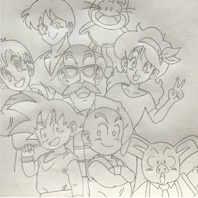Goku, Krilin, Master Roshi, Bulma, Yamcha, Launch, Puar and Oolong #goku #songoku #krilin #masterroshi #roshi #bulma #yamcha #launch #puar #oolong #anime #manga #dragonball #inktober #inktober2021 #inktoberday8 #drawtober #2hpencil #4hpencil