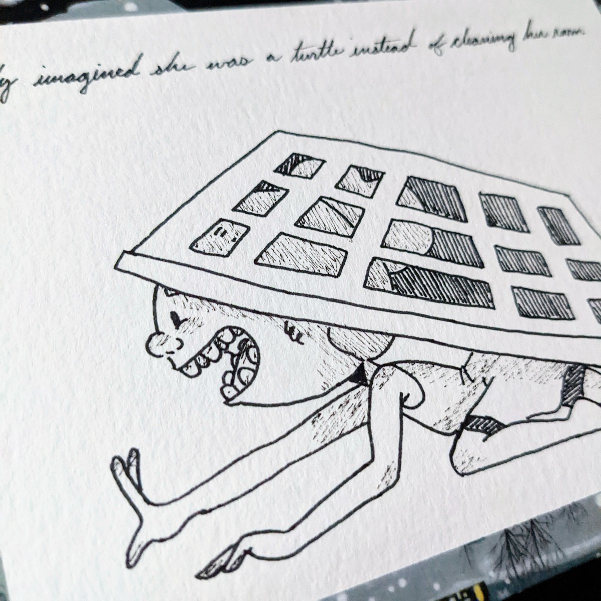 Molly imagined she was a turtle instead of cleaning her room... #illustration #illustrationartist #illustrator #kidlit #kidlitart #kids #turtle #shell #laundry #peachtober22 #mollyneedstocleanherroom