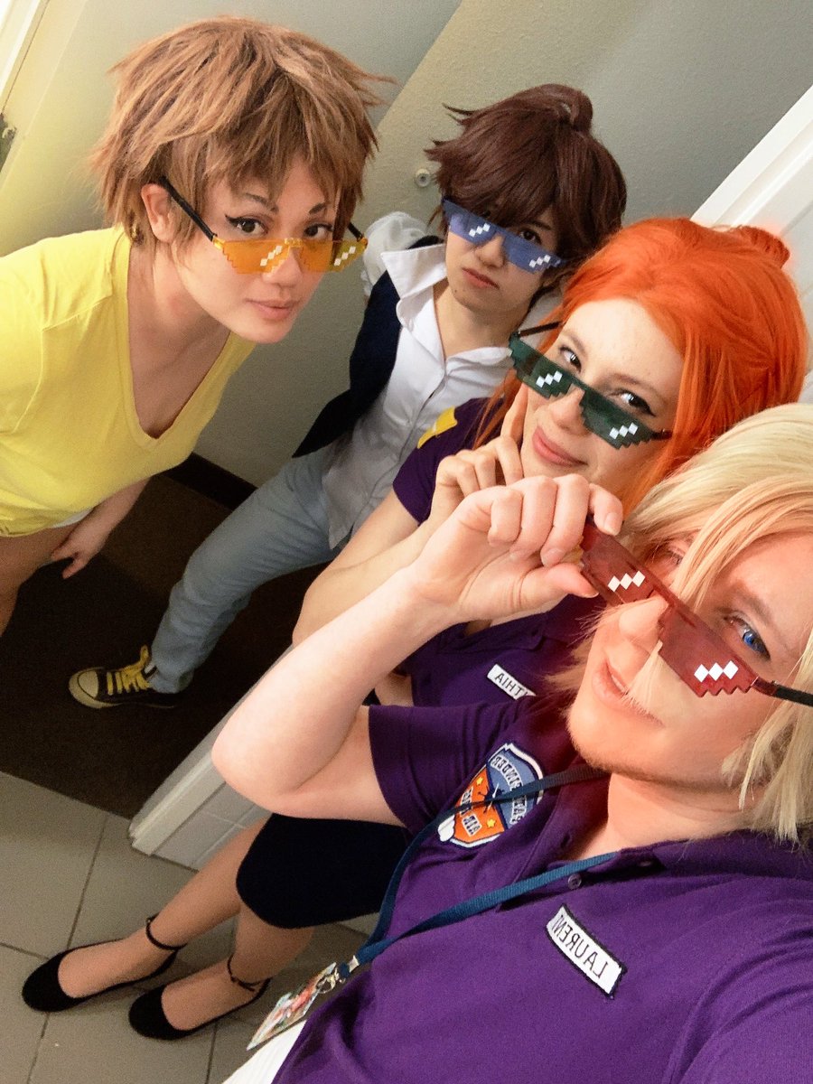 Get in losers, we’re going scamming ~ We got the whole squad together 👌👀💙💜💛💚 #greatpretender #grepre #cosplay #anime #laurentthierry #makotoedamura #abigailjones #cynthiamoore