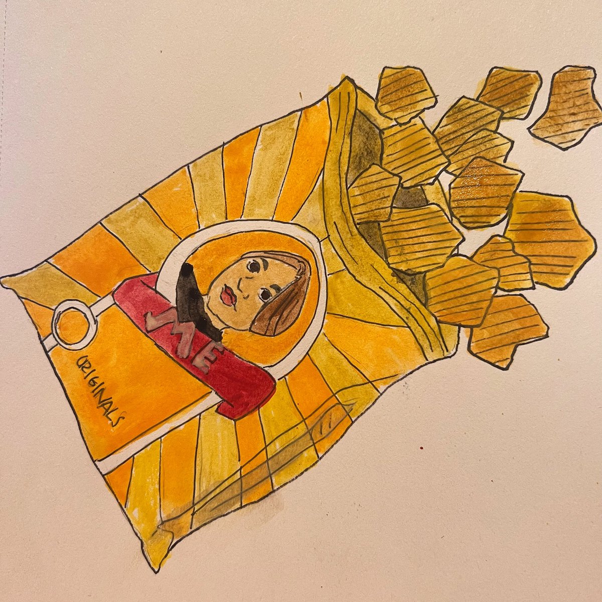 Day 27: Snack 5 days left of #inktober2022 how have I done 27 new drawings already ? #inktober2022Snack #inktober #inktober2022 @inktober #penandink #lays #me #imthesnack
