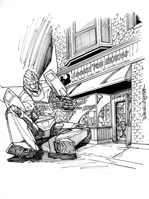 #Kayfabetober drawing 15 Prompt: LCS (Local Comic Shop) @LookinForHeroes Since I moved this store has become my LCS and it's a great shop. Even Hot Rod approves :p #cartoonistkayfabe @jimruggart @EdPiskor #LCS #comics #transformers #rodimus