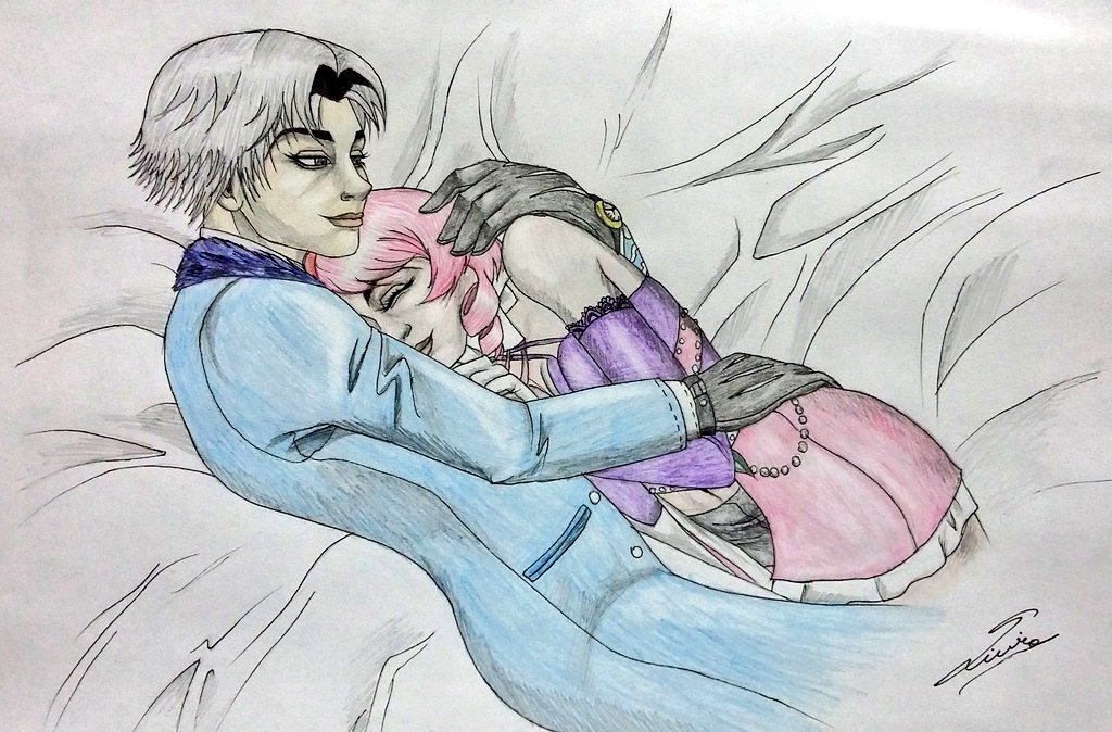 Old cute artwork made on 9th april 2017. After a manga base. Lee and Alisa two cutie babies sleeping in a basket. They spent their childhood together.🌙🌸 That's my theory. #TEKKEN #鉄拳 #alisabosconovitch #leechaolan #fanart #FGC #李超狼 #アリサ・ボスコノビッチ #traditionalart