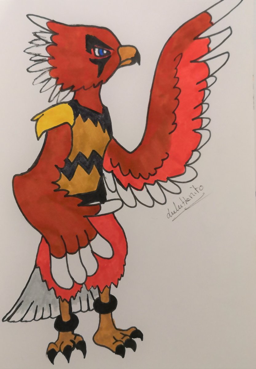 J-17 - Dessin Libre #inktober2021 J'avais pas d'idées pour "Percuter" donc, voici Midow, jeune Rito craintif au plumage vermeil d'un RP #legendofzeldabotw :3