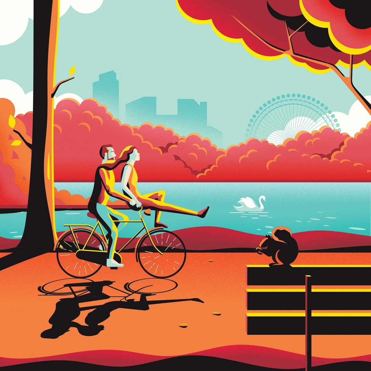 Summer lovin' ! With illustrator, @JackDalyCo, represented by @ciablog. Explore Jack's portfolio on the Directory of Illustration: buff.ly/3asjO9g #summertime #leisure #love #citylife #bikeriding #cityparks #illustration #digitalillustration #graphicarts #summervibe