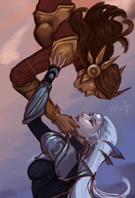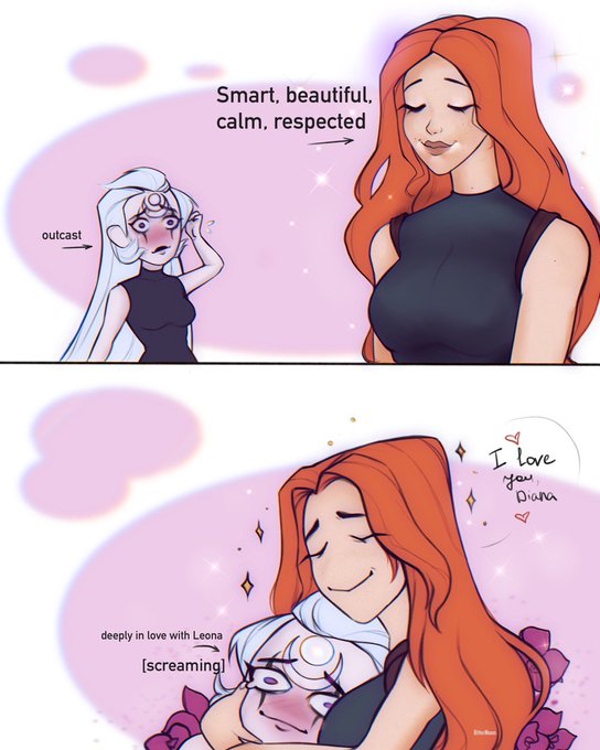 I joined @League_BigBang alongside my very talented friend ( moonlight-frittata on tumblr ), so here's some wholesome pre-aspect leodia! <3 Make sure to check out the fic I drew this for, it's absolutely amazing! archiveofourown.org/works/39054648 #leodia #leona #diana #artoflegends