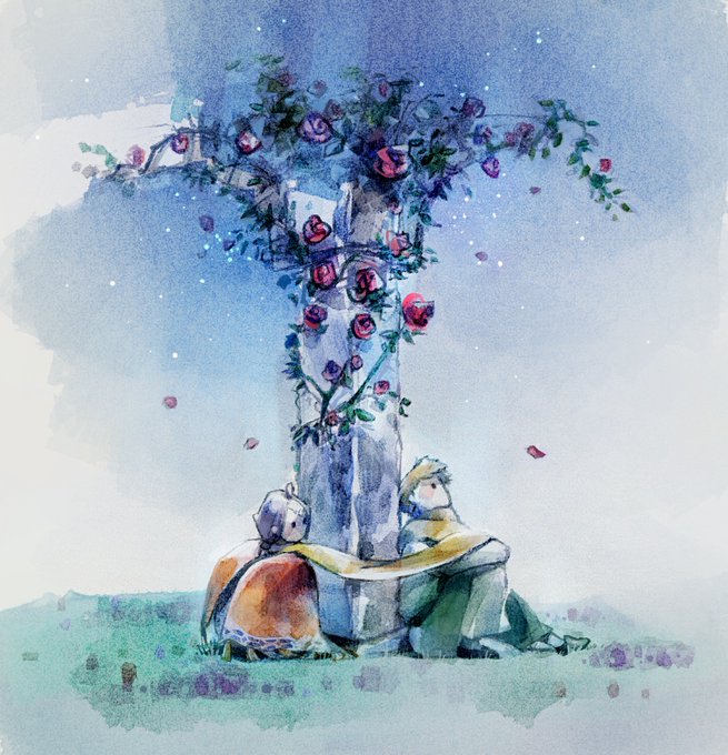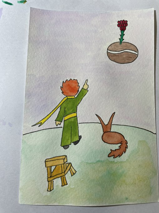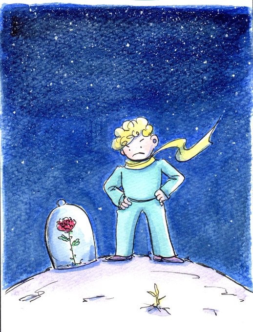 #イラスト #イラスト好きな人と繋がりたい #星の王子さま #lepetitprince #顔彩画 #水彩画 なんか久しぶりに王子さま描いた? カフェら展のお礼のクリスマスカードでもって考えてたのに…何故かこんな風に(¬_¬)