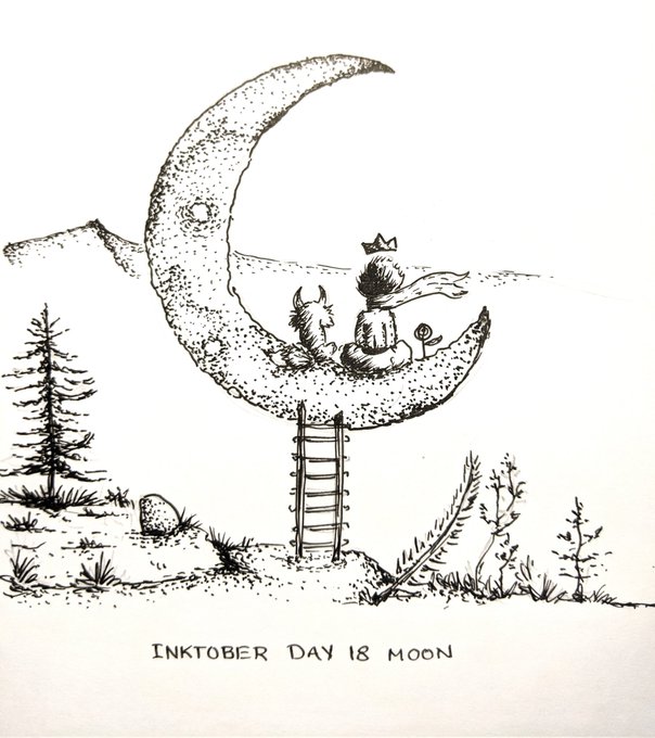 Inktober day 18 Prompt: Moon Title: The Little Prince #Inktober #inktober2021moon #inktoberday18moon #inktobermoon #lepetitprince #thelittleprince @lepetitprince @inktober