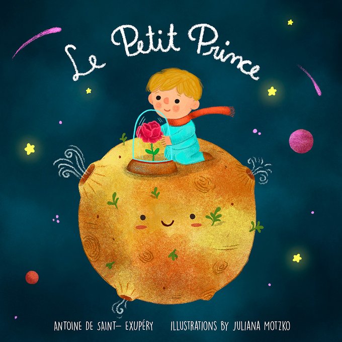 Inspired by the amazing #drawingchallenge #storybookseptember2022, I made a cover for "Le Petit Prince", by Antoine de Saint - Exupéry. #bookcover #LePetitPrince #PequenoPrincipe #TheLittlePrince #kidlitart #kidlitartist #illustration #illustrator #JulianaMotzko