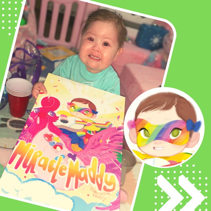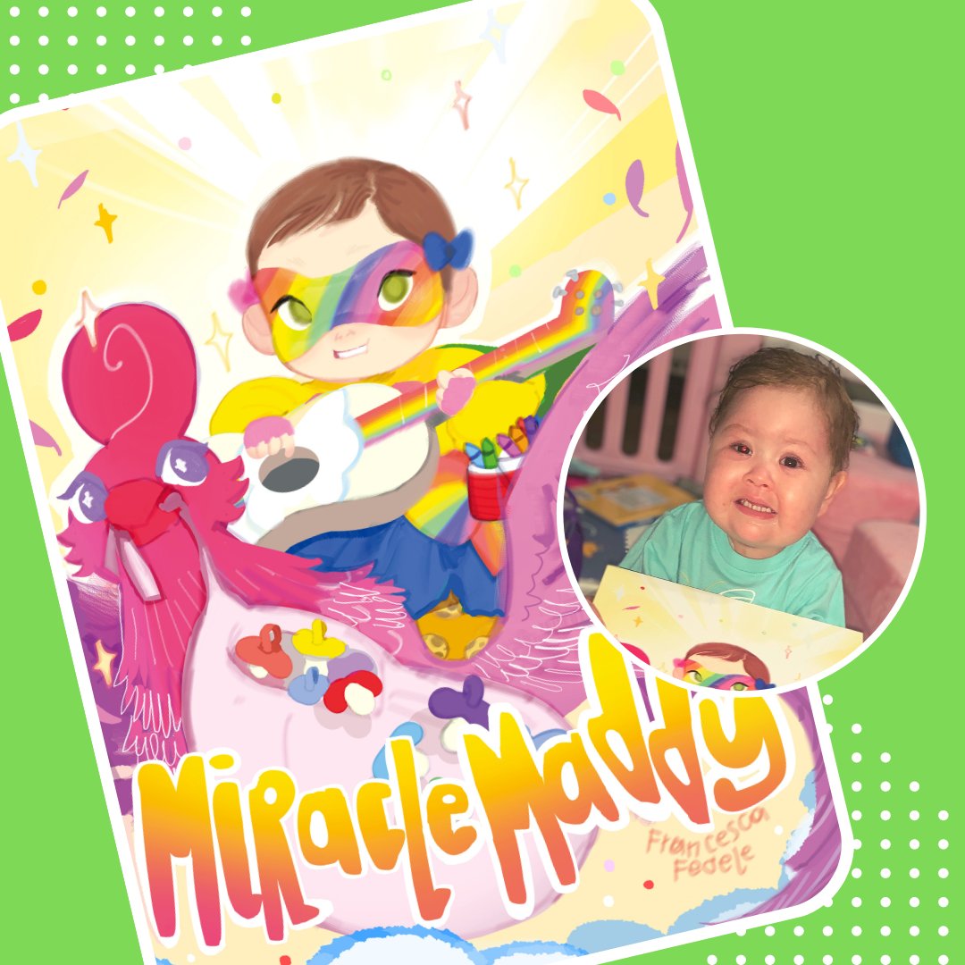 (Photo shared with permission) Miracle Maddy brings joy to every room she enters! Inspired by M. (age 2) and designed by Francesca Fedele. @peacchip #leukemia #superheroproject #characterdesign #illustration