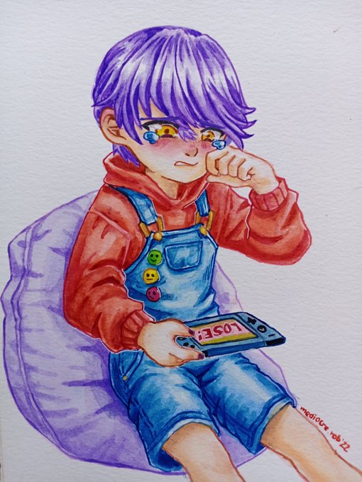 Kid Levi crying after losing to a boss in a game 🥺 Based on the I Kid You Not event of Obey Me! 🥰😊 #obeyme #obeymefanart #obeymeleviathan #levifanart #traditionalart #watercolour