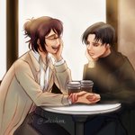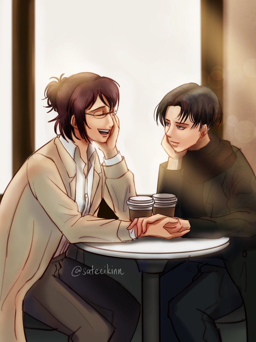 Coffee Date ☕️ the official Levihan art was such a treat 💜💚 #levihan #利韓 #リヴァハン #leviackerman #hangezoe #levihanfanart #attackontitan