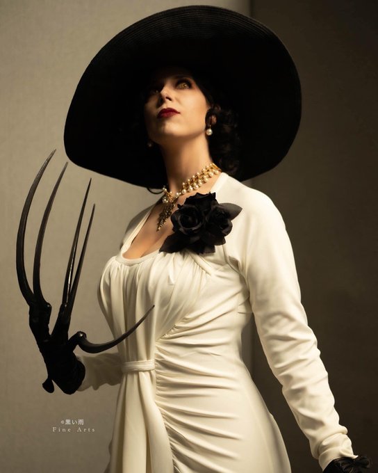 The first pictures of my Lady Dimitrescu at #LFCC are starting to pop up - I love the light and shadows in this set taken by the amazing @blackrainfinearts #ladydimitrescu #ladydimitrescucosplay #londonfilmandcomiccon #cosplay #residentevil #capcom #cosplaygirl #photography