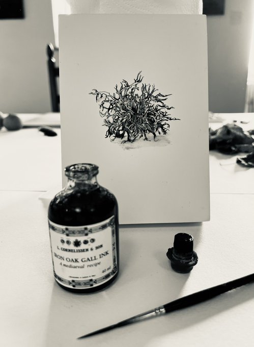Somebody reminded me it was #inktober2022 & I didn’t need another excuse to crack open a bottle of Iron gall ink & attempt to draw a ball of #lichen