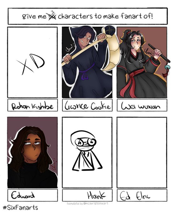 I had planned to do the challenge of the 6 characters but in the end, I got bored, although I do have a part of the finished Ed Elric. . . SO yes #cookierun #licoricecookie #WeiWuxian #MDZS #OurFlagMeansDeath #SixFanarts