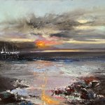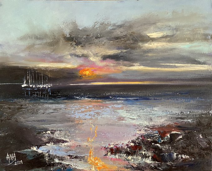 Majestic Sunset. Original Oil Painting on Canvas 50cm x40cm. Available #art #artwork #seascape #contemporarypainting #aniablasinska #artist #ArtForSale #light #artcollector