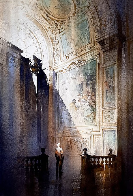 “I still feel the need of some imperishable bliss.” Wallace Stevens Afternoon in Rome @twschaller #art #architecture #light #shadow #watercolor #imagination #bliss