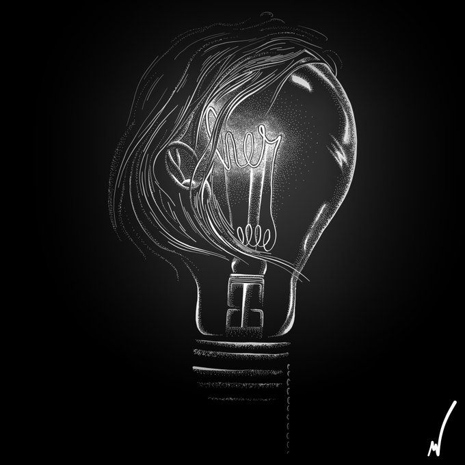 Continuing on the white on black theme #inktober #inktober2019 #penandink #penwork #handdrawn #stippling #lightbulb #light #dark #her #art #artwork #graphicart #robloxdev