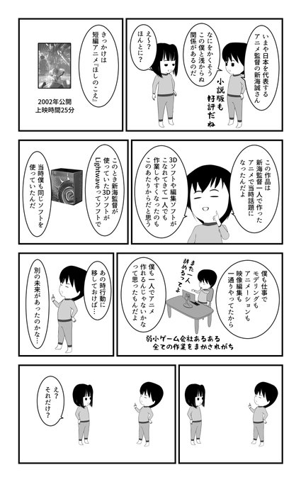 『すずめの戸締り』が好評の新海誠監督 なんとN氏と浅からぬ関係が? 『ほしのこえ』発表当時、メイキング講座的なイベントに行った想い出 あの時こうしておけば良かった… と思わないために今漫画描いてます #N氏の日常 #漫画が読めるハッシュタグ #創作漫画 #ほしのこえ #Lightwave #3DCG