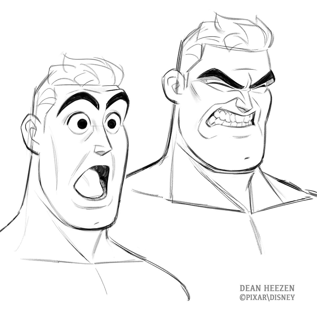 Once we were beginning to hone in on features that felt right for Buzz, I started doing some expressions for him. My director, Angus and I wanted to explore in animation where to emphasize the kinesiology of stress; in the neck, cheeks eyes and brows. #Lightyear #characterdesign