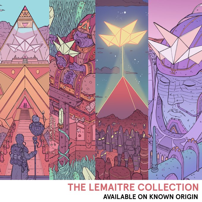 The Lemaitre collection NFT's are now available over on @KnownOrigin_io Four unique artworks. Each 1/1. knownorigin.io/laurie-greasley #NFT #NFTartist #ligneclaire #scifiart #illustration #cryptoart