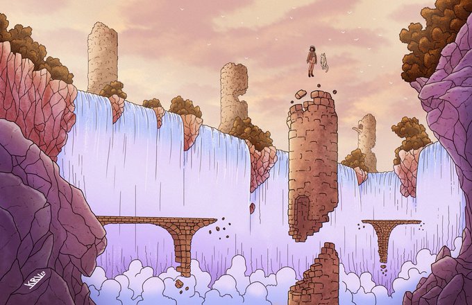 It All Falls Down. (2022).First artwork for this year! This was just going to be another stab at painting but i couldn't stop myself from doing the lineart hahaha. #artph #ArtistOnTwitter #ArtistsofSEA #ligneclaire #backgroundart #somedistantspaces
