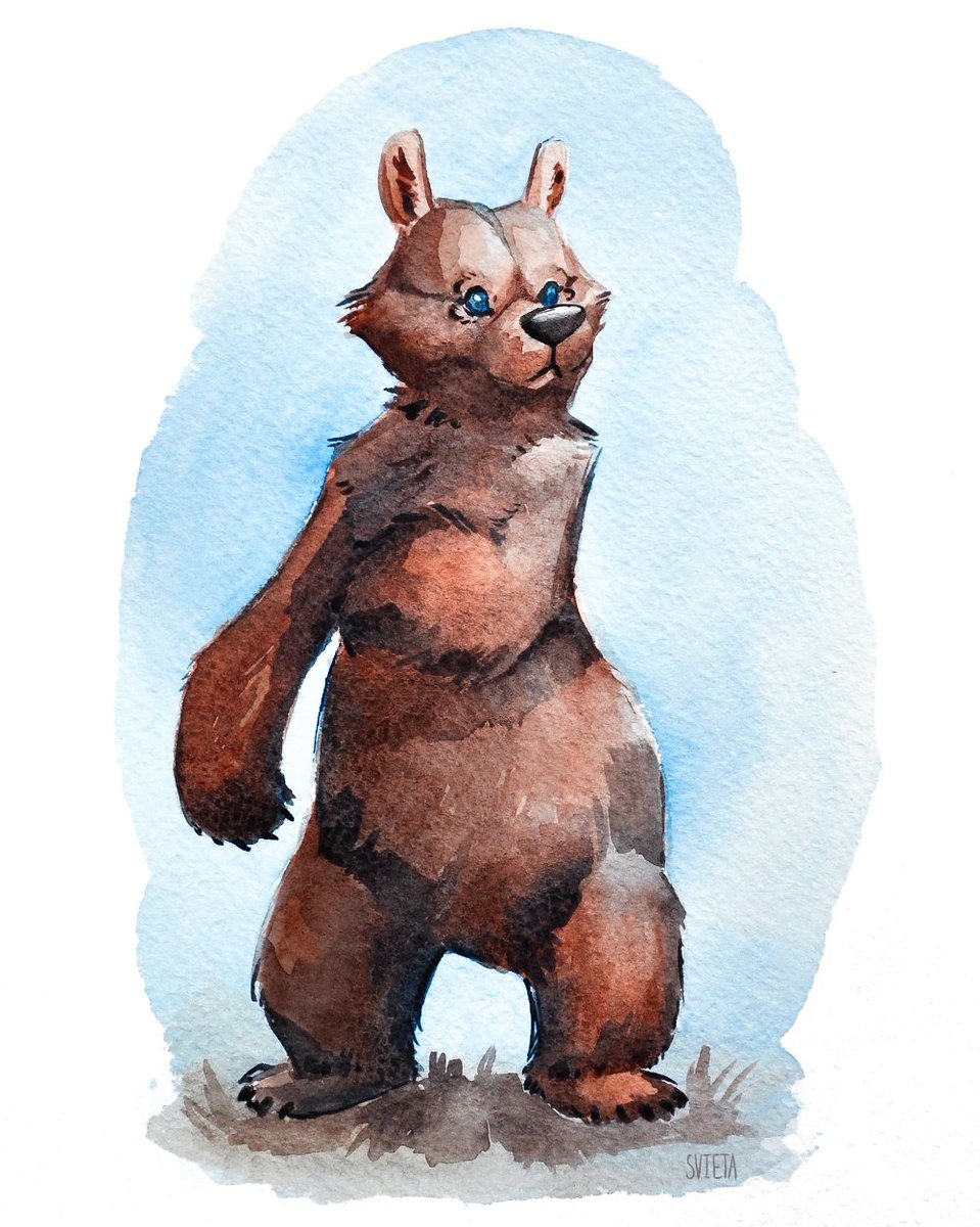 Blue eyed bear 🐻 - #inktoberday26 #inktober2019 #inktober #bear #cutebear #cartoon #watercolor #limitedpalette #animalart